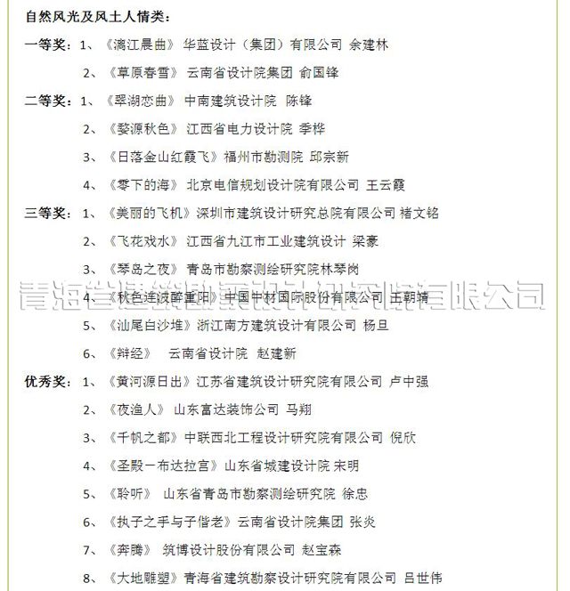 近期,根據(jù)中國勘察設(shè)計協(xié)會《關(guān)于公布首屆全國勘察設(shè)計行業(yè)攝影大賽獲獎名單的通知》(中設(shè)協(xié)字[2015] 52號),我院生產(chǎn)經(jīng)營部主任呂世偉同志提交的參賽作品《大地雕塑》獲自然風(fēng)光及風(fēng)土人情類優(yōu)秀作品獎,這是我院自建院以來,在全國舉辦的有影響的攝影比賽中實(shí)現(xiàn)的又一新突破,特向獲獎?wù)弑硎咀YR!