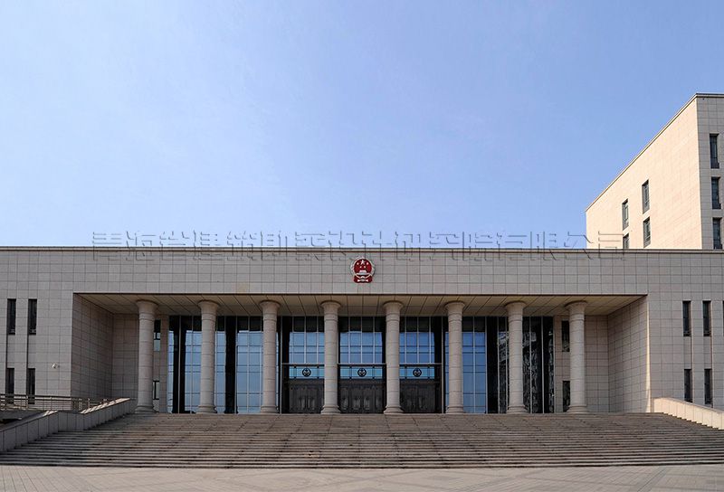 青海省高級(jí)人民法院審判辦公樓工程位于西寧市城北區(qū)柴達(dá)木路與西站二巷道路交叉口西南角,總用地面積60.27畝,用地內(nèi)布置審判辦公樓、法官培訓(xùn)中心、干警高層住宅樓及配套鍋爐房等項(xiàng)目。審判辦公樓總建筑面積32671.00m2,地上層數(shù)為8層,地下1層,建筑高度31.80m。主體建筑分為辦公用房和審判用房?jī)蓚€(gè)部分。建筑一層及局部地下室設(shè)汽車庫、設(shè)備用房、檔案室和羈押用房。辦公部分二至八層為法院行政公共用房,其中二層設(shè)門廳、多功能會(huì)議廳,頂層設(shè)大會(huì)議室、視頻會(huì)議室、閱覽室、健身房等,其他樓層設(shè)辦公及部門會(huì)議室。辦公用房設(shè)置滿足規(guī)范《黨政機(jī)關(guān)辦公用房建設(shè)標(biāo)準(zhǔn)》的要求。依據(jù)《人民法院法庭建設(shè)標(biāo)準(zhǔn)》審判用房布置在辦公樓東南側(cè),相對(duì)獨(dú)立,其中設(shè)大法庭1個(gè),中法庭2個(gè),小法庭8個(gè),另設(shè)立案大廳、信訪大廳、候?qū)彺髲d及法官和參與庭審活動(dòng)的律師、證人、公訴人等人員的配套服務(wù)用房。審判法庭布置重點(diǎn)解決法庭內(nèi)各種流線的要求,即法官通道、羈押通道、旁聽觀眾通道,三者獨(dú)立又互相聯(lián)系的關(guān)系。