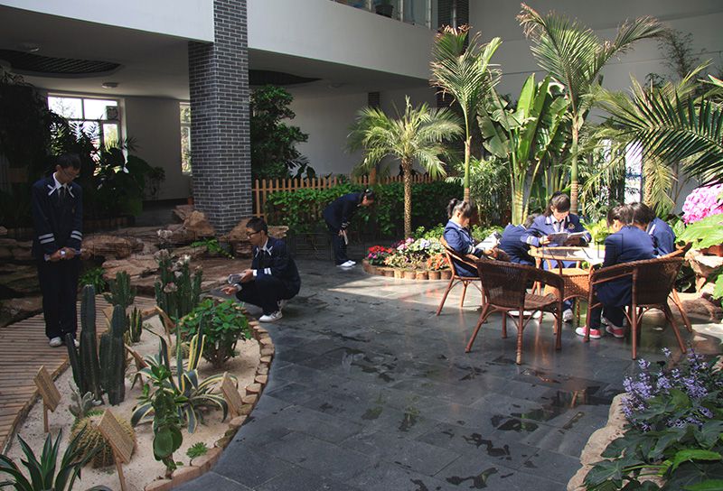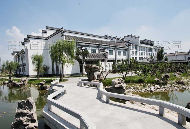 校區(qū)主入口設在南端,人流出入口寬24米,車流設9米寬獨立出入口,遠離城市主干道,通過校區(qū)主要入口進入校前廣場,辦公區(qū)布置在廣場東側(cè)靠規(guī)劃路,教學區(qū)布置在廣場西側(cè)最安靜區(qū)域,餐廳及宿舍布置在西北角,400米運動場布置在用地東北角,臨城市主干道。規(guī)劃采用集中緊湊的功能布局結構,將教學、生活及運動區(qū)用簡潔三角形空間連接,最大限度縮短師生步行距離,并通過大小不同的主題廣場、綠化、湖面將三部分有機連為一體。在學校的創(chuàng)作中,建筑師結合學校辦學思想和理念,確認以“簡徽”建筑風格及“蘇州”園林景觀的設計思路,通過對設計思路反復論證、研討、修訂,歷時一年完成新校建筑設計方案及施工圖設計。